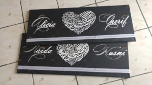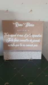 Les objets & déco personnalisés sont aujourd’hui une idée cadeau en vogue. D’ailleurs beaucoup d’adeptes ont su faire confiance à Henné du Paradis afin de faire plaisir à leur entourage en offrant un objet personnalisé à leur image. Exemple : bougies, tableaux, mugs, livre d’or, urnes, coussin porte alliances personnalisées, etc.