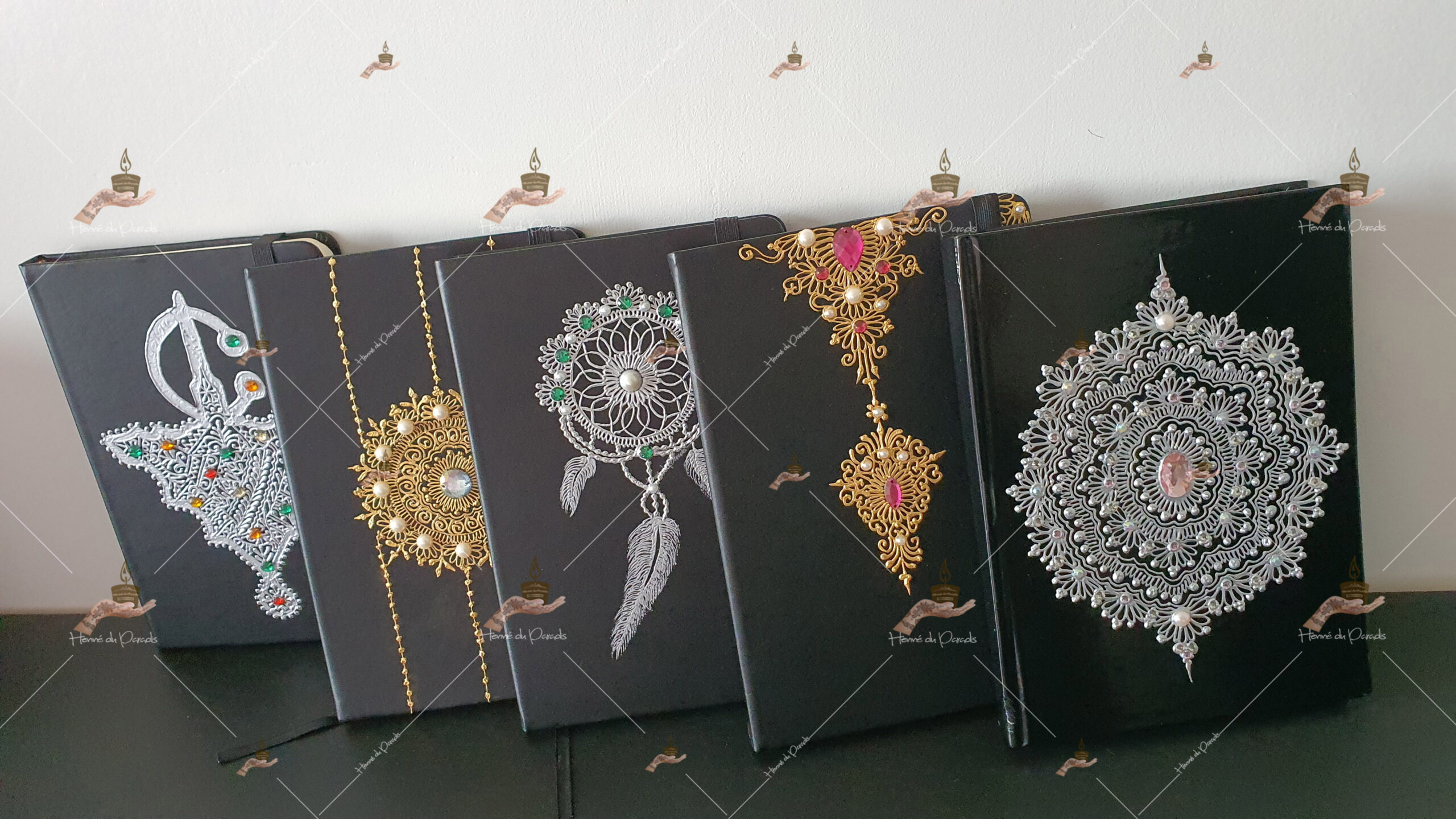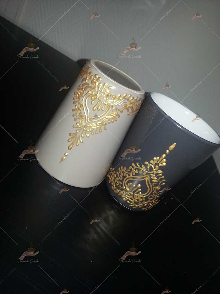 Explorez l’art de la personnalisation d’objets avec Henné du Paradis. Nous transformons des articles du quotidien en œuvres uniques, apportant une touche personnalisée à chaque détail de votre vie. Gants et coton de henné décorés, carnets de note personnalisés. En passant par les verres à thé et mugs décorés alliant une durabilité sans compromettre la beauté des motifs. Notre créativité infinie saura vous émerveiller.